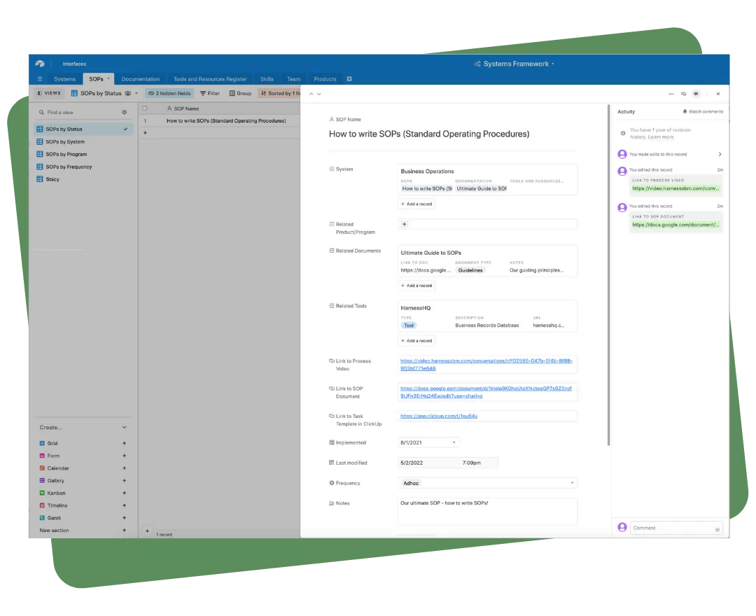 SOPS ARE NO GOOD BURIED IN MULTIPLE LAYERS OF FOLDERS, COLLECTING DIGITAL DUST. THEY NEED TO BE CONTEXTUALLY INTEGRATED INTO YOUR TEAMS WORKFLOWS.